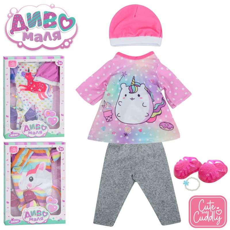 Одяг для пупса BLC84-101J-K-DM-UA, принт-єдиноріг, взуття, браслет, 3 різновиди