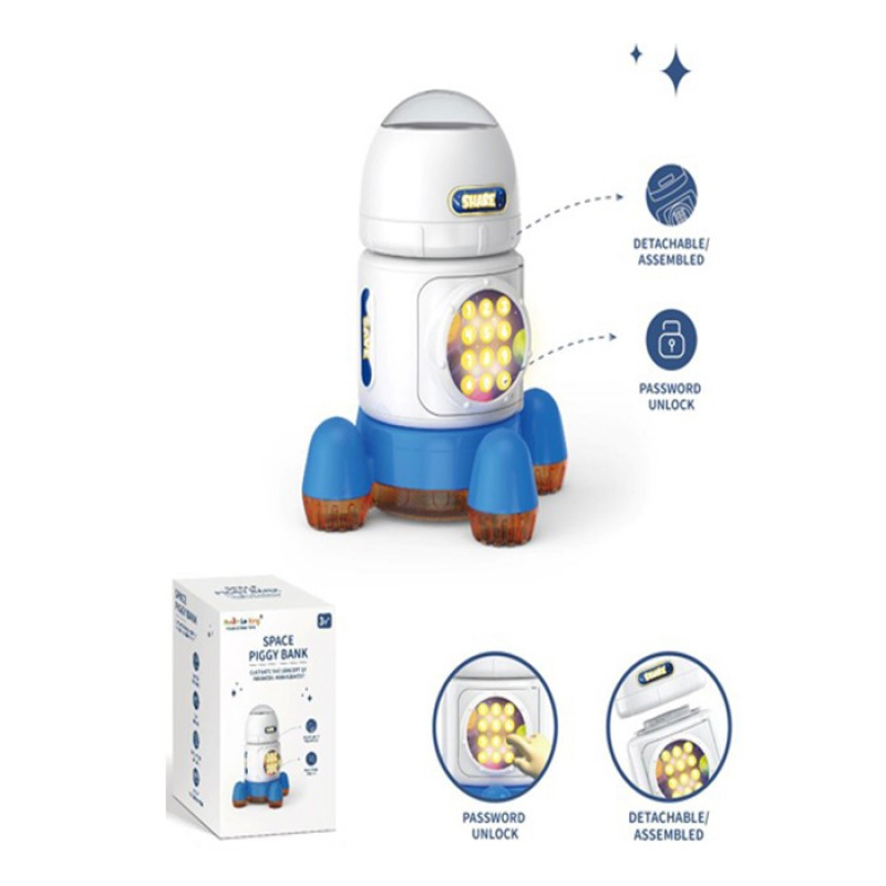 Скарбничка MK 5417, 27,5 см, ракета-сейф з кодом, музика-звук (англійський), світло, ключ