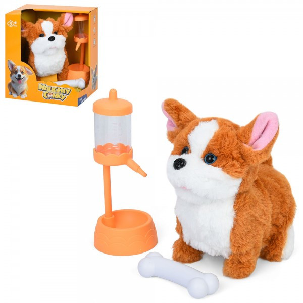 Собака 933-211E, 17см, звук, ходить, рухлива голова, аксесуари, на батарейках, в коробці, 19-22-15см