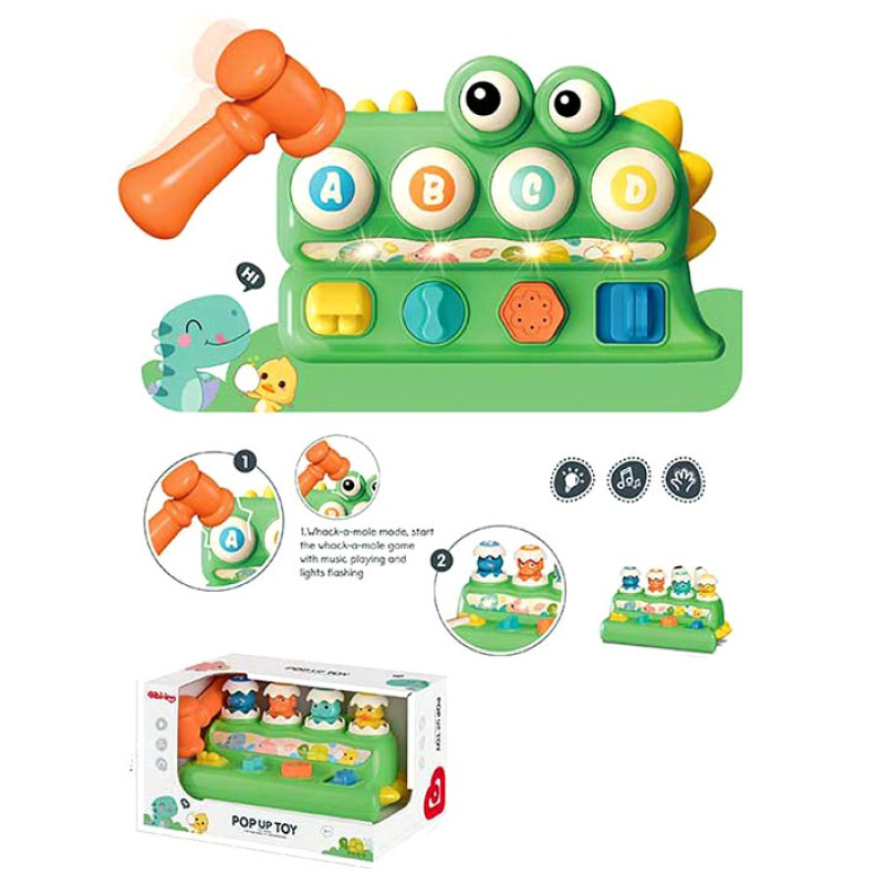 Логічна гра 6205, динозавр, стукалка, молоток, музика, світло, на батарейках, в коробці, 25-17-14,5 см.
